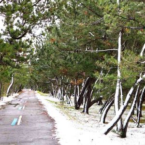 防風林 松 長年、海風を受け続け傾いています。