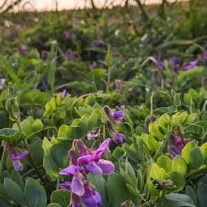こんばんは😉 夕方の浜辺でハマエンドウの花か咲いています。美しい濃い紫💜 浜辺も花盛り(✿^‿^)