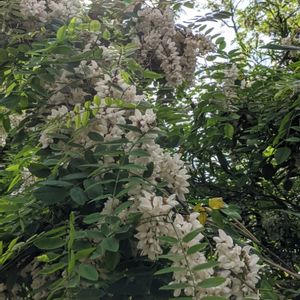 おはようございます☺️ 海岸へ向かう散歩の途中に咲いていました。 ニセアカシア 藤の花🤍によく似ていますが、枝ぶりが野性な感じてした😄