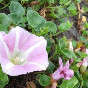 グンバイヒルガオ ヒルガオ科 サツマイモ属 海浜植物 沖縄 古宇利島の砂浜で咲いていました。 可愛いオカヤドカリもいました🎶