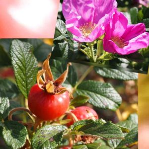 ❀今日のお花 ハマナス 🌱バラ科 バラ属 ✽生育環境により高さが20Cm〜1.5mの落葉低木、よく分枝してこんもりした樹形となるす ✽枝には刺と短毛が密生する ✽葉は奇数羽状複葉で小葉は7〜9個、表面に光沢があり皺も多い ✽花は枝先に1〜3個つき、径6〜10cmで花弁とがく片は5個、雄しべと雌しべは多数ある ✽果実は球形赤く熟し食用になる 子供の頃は赤くなった実を食べてたなぁ~(´~`)モグモグ
