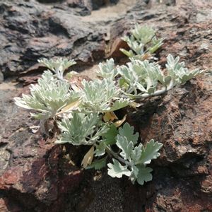 シロヨモギ(白蓬) キク科 ヨモギ属 8~10月 20~60cm 在来種 多年草 北海道、本州の新潟県・茨城県以北に分布し、日当たりのよい海岸砂地に生育する 全体が白色の綿毛に覆われ、雪白色になります🤍 葉は厚みがあり、ふかふかした触り心地です😆 秋には狭い円錐花序に多数の花をつけます 茎は基部で横に広がって伸び先端が立ち上がります 立ち上がった花序は遠目にもよく目立ちますよ😊 花を見れるかな~(灬º‿º灬)♡
