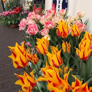 今日のお花『チューリップ』 みどりのまとめ『オランダ編 Part 1』に使ったpic アムステルダムのチューリップ博物館の前の🌷🌷🌷 さすがオランダは花の国🎶🎶🎶 カタログでしか見たことのない花や花色、 嬉しくて楽しくてフワフワしてました˙˚ʚ⸜(* ॑ ॑* )⸝ɞ˚˙