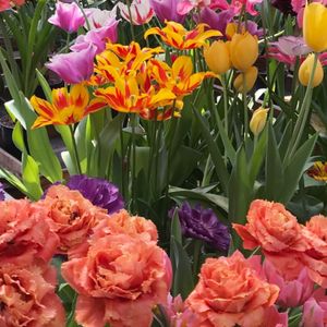 オランダの球根植物のナーセリー 勿論メインはチューリップ🌷 翌日が期間ショップが終わる(5月後半)とかで 球根6~8個入った開花チューリップが一鉢€6.50 とってもお得だったけど、 もちろん日本には持ち帰れない( ⁼̴̶̤̀ω⁼̴̶̤́ ) 珍しいチューリップが国内でも手に入れば良いのにね (_`Д´)_クッソォォォォォ!! なんて、ワタクシとしたことが思ってしまいましたのよ おほほヾ(  ̄▽)ゞオホホホ