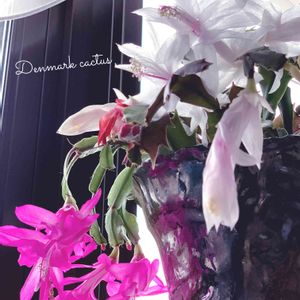 お豆ちゃんとこから来たデンマークカクタス♥️ 普段はシャコバサボテンって呼んでるけど(*´艸`) オレンジの花が最初に咲いて、 次はピンク&白が同時に✧*。٩(ˊᗜˋ*)و✧*。 今も蕾があるから、まだまだ楽しませてくれるね♥️