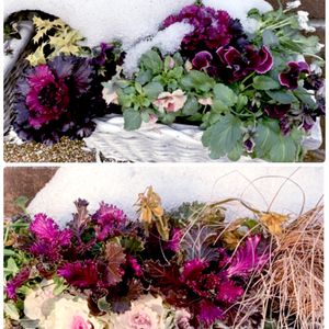 葉牡丹とビオラの寄せ植えが久々に顔を見せたᐠ( ᐢᐢ )ᐟ 今年は30cmくらいの雪が被さっていたのに 木曜の雨と暖気でだいぶ解けた🎶🎶🎶 そして元気な葉牡丹とビオラが( ˆᴗˆ )💕 雪に負けなかった姿を見せてもらって 私もニッコリ( ⁎ᵕᴗᵕ⁎ )♡