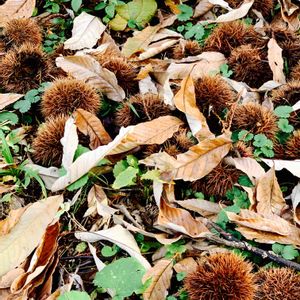 茶々散歩の途中の栗🌰の木の下🐾❤ 人目を気にして誰も拾わないのかな? 真ん丸な殻がコロコロと可愛い(⑅•ᴗ•⑅)°♡ でも、茶々が遊ぶからリードを短く持って歩かなきゃならないの💦 これが腰に来るのよね(-ω-;)