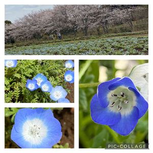 ネモフィラのお花見💙 まだ少し早かった‥ 濃い青のお花は、うちの💙 GS花友さんに頂いたお花です。
