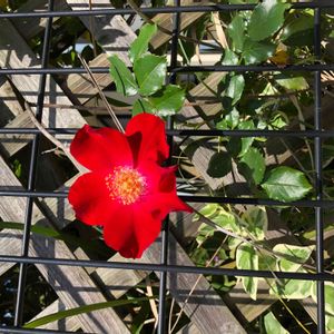 我が家のバラ開花2号 🌹サラバンド🌹 朱色がかった赤いつるバラ🥀