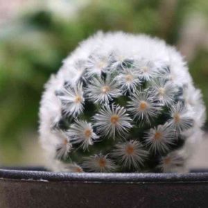 雨だから…。 今日は おうちの中にいるサボさんを…🌵 マミラリア属 カルキング🌵 白いトゲトゲが お花みたいで 愛らしいでしょ~*。・+(人*´∀`)+・。*💚