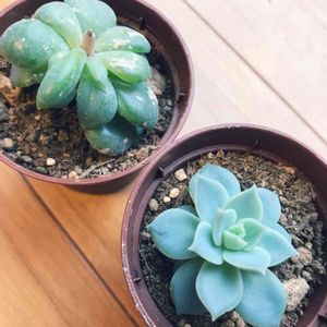 エケベリア 徒長してたので二つに分けてみた😅 春秋型だから今は休眠中なんだよね。 水やりは控えて暖かくなるのを待ってます。