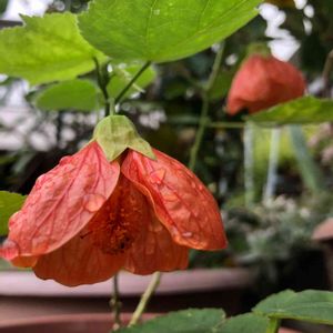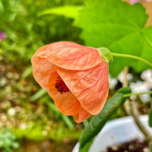 アブチロン「オレンジドロップ」が咲いてくれました😊✨ 小さめの花で、形が可愛いです💕
