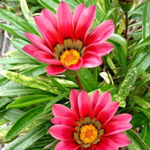 可愛い(◍•ᴗ•◍)❤ ガザニア🌸💓❤ キク科・別名が勲章菊でしたね✨🎀 赤色は余り見た事なくて 嬉し楽し🎵🎵 会社近くの花壇にこの花だけ 可愛いかったです💕❤