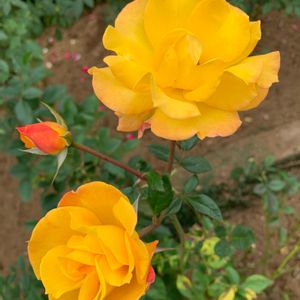 長居植物園バラ園 12/9 「ゴールドマリー’85 系統☞F」 ☞赤みのある濃い黄色の房咲き