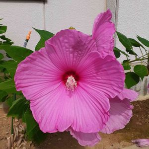 芙蓉の花🌸 地域の公民館に『デカイ』と言う言葉がぴったりな めちゃめちゃデカイ‼️芙蓉の花が咲いたので、思わずパチリ📱💥 でもとっても可愛いピンク色💗😆💕