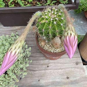 ひょんなご縁から、大きなサボテンを譲って頂きました。近所のおじいさん(お亡くなり)→地元不動産の奥さん→近所の植物好きのおばさま→私 サボテンリレーです。お盆の初日にきました。うちの仏壇だけど知らないおじいさんの分もお線香あげました。 根詰まりしてそうだから植え替えしようかな