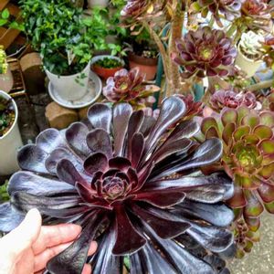 はみ出しすぎー😂 高砂の翁さん💦 もう秋まで植え替えしないんだから、窮屈だろうけどガマンしてー😅💦 暑い😵けど、自分よりも庭木や多肉の様子が気になってる〜😂