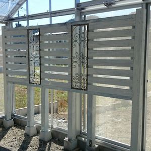 向かい側のマンションからの目隠しにラティスを取り付け。クレマチスとジャスミンが絡む予定♪
