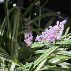 白斑ヤブラン シルバードラゴン で一件落着 斑入りヤブランより葉が細く 花色薄い ということで葉X、一つ解決‼️ もうドラゴンやら竜やら蛇やらがつく名前見たくない