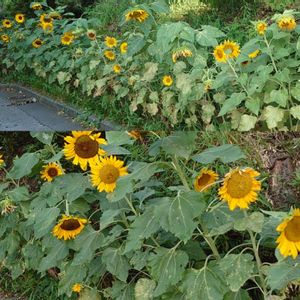 8/14㈮④ Sunflower path と勝手に名付けている ヒマワリの小路、通り道。 道沿いにズラ〜ッとひまわりが並んで咲く姿は楽しいです🌻🌻🌻