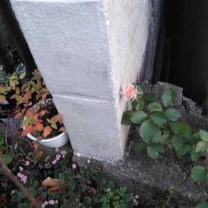 小さなプランターに突然生えてきたウバメガシ幼苗 (前のphoto, red rose の) 2年かかってやっと5cm, 長いこと双葉でしたが.. かわいがっています.