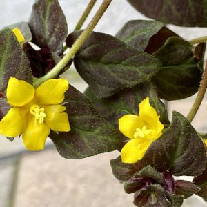 カラーリーフのリシマキア🌿,, 今黄色い花を可愛く咲かせてくれてますෆ˚* 1度で2度おいしいコ✨️デスヨネꕀ⋆♪̊̈♪̆̈ うちではミッドナイトサンが1番元気🌿,,❶❷昨日 リッシー(❺今朝)とオーレアは昨年😇 またお迎えしました𖤣𖥧𖥣。𖥧𖧧 姿の違うリシマキアボジョレーさん チンアナゴのようになってきました🍷 ❹5月中旬 ❺一昨昨日