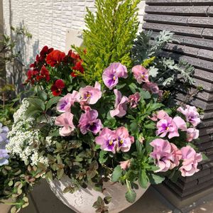 秋に作った寄植えの最終形態。 キンギョソウ、ブロンズドラゴンが咲きました💖ビオラが枯れる前ギリギリです。 グンと伸びて、存在感のある花が素敵です😊✨ ただ、頭が重いので、昨日の雨で全て倒れてしまいました😭今日急いで小さなトレリスを立てて誘引したのですが、あまりうまくいかず💦(写真は倒れる前です)スッと直立してくれたらとっても格好良いのになぁ。 背が高いので、切り花にして楽しむのもアリかもしれません😉
