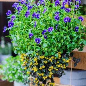 初投稿です。 春先に作ったビデンスの寄植え🌿 ビデンスは枯れてエレモフィラ・ニベアが暴れまわってます。 夏越しできますように…