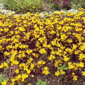 リシマキアさん 去年、寄せ植え鉢から地植えにお引っ越しさせました。 とっても増えてお花を沢山咲かせてくれています🌼🌼
