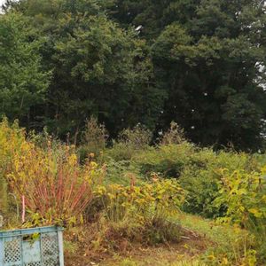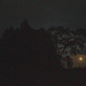 降りだしそうな空 窓からトトロの森 庭のモミジアオイも見納めですね。 昨夜はお月様が明るく照らしてました 🦉ホーホー