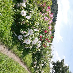 梅雨明けしたのに、道端で咲いてるタチアオイ のどかな田舎の道です
