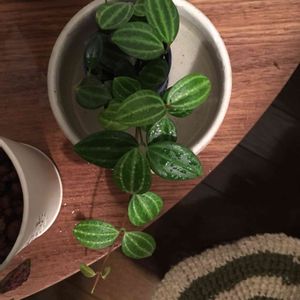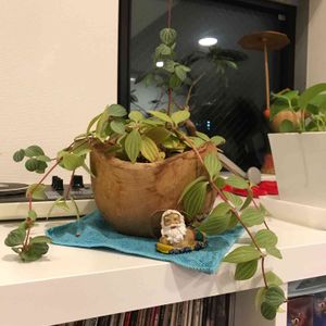 ペペロミア アングラータ🌿 モンステラとエンジョイと寄せ植えにしていたアングラータさんが、 この暑さで茎一本残して溶けてしまったため、新たにもう一株お迎え😅 今度はお一人様✨✨ アジサイは今年作ったドライ💠 色はやっぱり抜けちゃったけど、秋色になりました☺️🎶 寄せ植えのアングラータさん…復活するといいなぁ😢💓💦(ベランダで療養中)