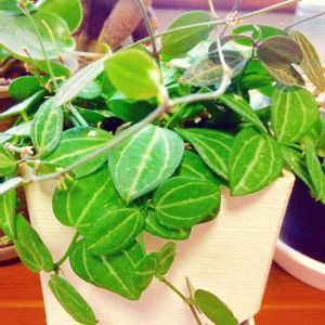 僕の家にある植物なんですが なんていう名前がわからないんですよね。 もしよろしければ名前を教えてください‼️ 調べた中で1番似ているのは、 『ハートカズラ♥️』でした。