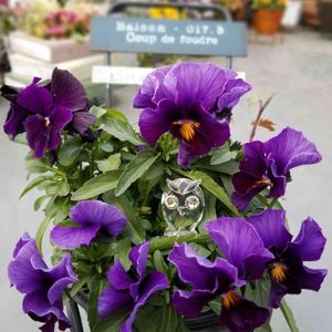 ビオラですが花弁が大きい~🙄 モリモリしてきましたᰔᩚ 💜.•*¨*🌿•.¸¸♬💜 ビオラの隙間に不苦労さん🦉を… (✪▽✪)✧*。࿐͙° *キラ 🏷️フクロウ祭 🏷️幸せを呼ぶフクロウ祭り 参加しまーすෆ¨̮⑅
