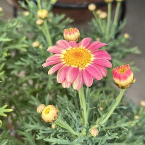 今日は一段と暖かく、でもビルの谷間は強風で、上着を来たり脱いだり忙しい日でした 着るものお悩みの季節ですね 昨年の幕張メッセの花フェスで苗でお連れしたボンザ・マーガレットさん 株も大きくなってモリモリ🌸 満開が楽しみな🏷金曜日の蕾たち