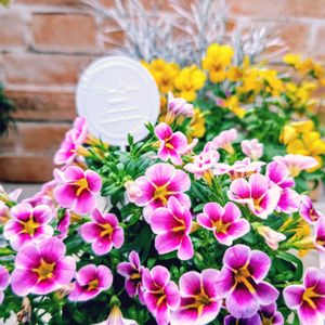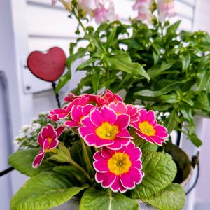 明けましておめでとうございます🎍 今年も宜しくお願いします。 今日のお花 プリムラ 昨年、作った小さな寄せ植え🌸🌼バランスが💦~初pic 寂しいので、昔、作って貰った❤️にワイヤーでガーデンピックをさっと作り刺した😆