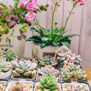 *ブロンズドラゴン🌸 去年、寄せ植えに入れて、やっと、咲き初めました。 *名前?のコ 随分、花芽が短いね〜 気がつけば、子株ちゃんも…窮屈そう💦 これからの手入れに、悩みます🤣