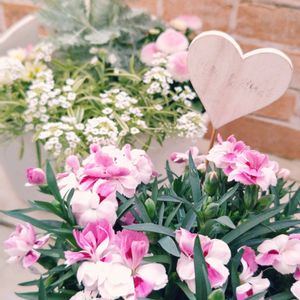 少し待機させたお花と、最近お迎えした *スーパーアリッサム フロスティーナイト 寄せ植えにしました。🤍大きくなってほしい。 *バラ咲きジュリアン プリンアラモード 去年は鳥にイタズラされた💦 夏越しも出来なかったから、またお迎えしてます😆