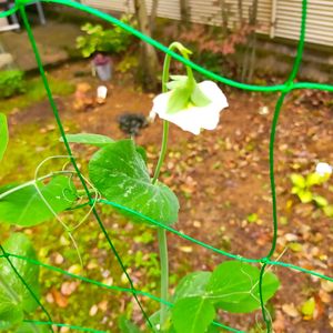 スナップエンドウ(つる有り)💚 12月に植え付けた苗、お花が咲き始めました✨ スナップエンドウを育てるのは2回目…前回はすごいテキトー栽培でしたが今回はちょっと頑張って高さのあるネットを立ててみました(やっぱりテキトーだけど) 追肥を忘れがちなので気をつけよう😅