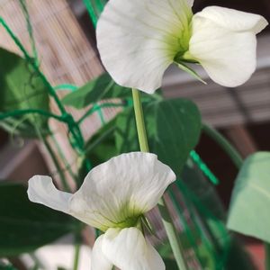 スナップエンドウ🌱 なんとなく目新しいものを育ててみたくなって、つるありスナップエンドウの苗を買ってみました😆 実家で見たエンドウマメの花が可愛かったこともあり、、、半分お花が目当てです😅
