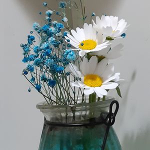 小さい瓶に 染めたカスミソウと スノーボール 気がついたら水がブルー こんな水入れた覚えない 何でだ❔ 最初なぜかわかりません でした。パカダネ😅😅