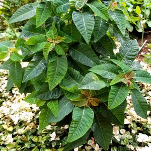 我が家のポインセチアが 塀の影で 根が土深く埋まってましたが 力ずくで引っ張り出してきました。 今年も全然色を出してません😅