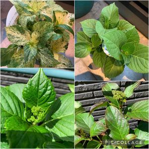 紫陽花の苗木 開花まで、るんるんるんるん☺️♪ 左上 スフレ 左下 小町 右上 カプリス 右下 レイ 小町とレイはつぼみも確認できて ネットで検索かけては るんるんして楽しみがどんどん大きく♡ 😅 3月の上旬?に園芸店で 早くも紫陽花を見た時から 毎日考えない日はないほど☺️ 詳しくはないけど 初心者だけど 持ち品種も少ないけど 紫陽花のおかげで今年も楽しい😊💕 今日もお疲れ様でした✨