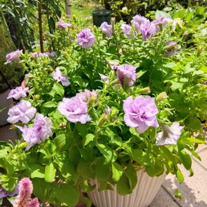 おはようございます😊 今日も朝から暑いです🌤️ 熱中症に気をつけて過ごしましょう👒🍉 ①八重咲きペチュニア ギュギュ ラベンダーピンク? 一株残っていた子をお迎えして、中々花数が増えなかったのですが、急に咲いてきました。頭が重くて真ん中が空いてしまってます🤣 ②薔薇 レイニーブルー💜 気がつけば咲いていました💜 ③ミニバラ プリンセスオブインフィニティ ④多分、薔薇 ディスタントドラムス🩷🧡 ⑤薔薇 エターナル💜こちらも次々開花中