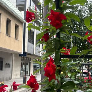 こんばんは🌇 通勤途中の壁面緑化の花々が咲き出してキレイです💕💕💕 歩道脇のバラ🌹も満開になりました🎵 今日のpic