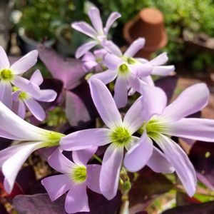 おはよぉ~(^∇^)ノ♪ オキザリス💗優しいピンク色💓 シックな葉💜もお気に入りです🎶