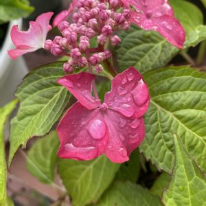 ☔️雨上がりの庭パト🐸 名前知らずの真っ白なアジサイが咲き始めました♪🥰 知人〜両親〜私へと移り来たお花です。 一時期、真っ白なアジサイが どうしても欲しいと凝った時がありました。 その頃は先代わんこを亡くしたころで、やたらと庭のお花も白いものばかりだったなぁ。 ガーベラ、クチナシ、バラ、アジサイ… いまは立ち直れましたが、 ペットロスだったんでしょうね。 今のわんこにだいぶ癒され、 カラフルなお花が増えました。 今朝も先代わんこにアジサイをお供えしました♪😌 pic3〜4 ガーデンアジサイ この子は放ったらかしでも丈夫なお花です♪💪😊💕 pic5 ベゴニア いつの間にか、あちこち増える子です。 水もし散る…ですね♪ 水滴がキレイです😍