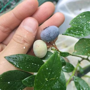こんにちは🍀 ベランダのブルーベリー、オニールの果実が少しずつ色づきはじめました。 袋にコロンと落ちた果実(風で落ちたのかな?)と写真の色づいた果実を少し収穫しました。 かわいい果実、小さなタッパーに入れ冷凍するか味見するか考え中です🫐🐶