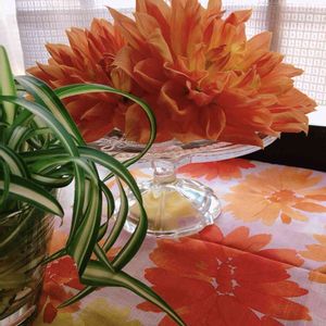 ケーキ皿にダリア🌼 クルンクルンも参加🌿 あ~賑やか💕 元気貰える🧚♀️🍃