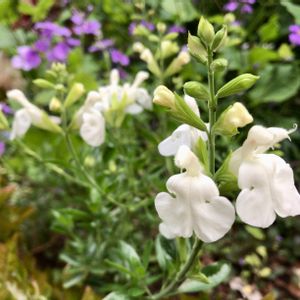近所の公園に咲いていた白いお花。 最近、よく見かけるチェリーセージの色違い。 ホワイトチェリーセージ🌱